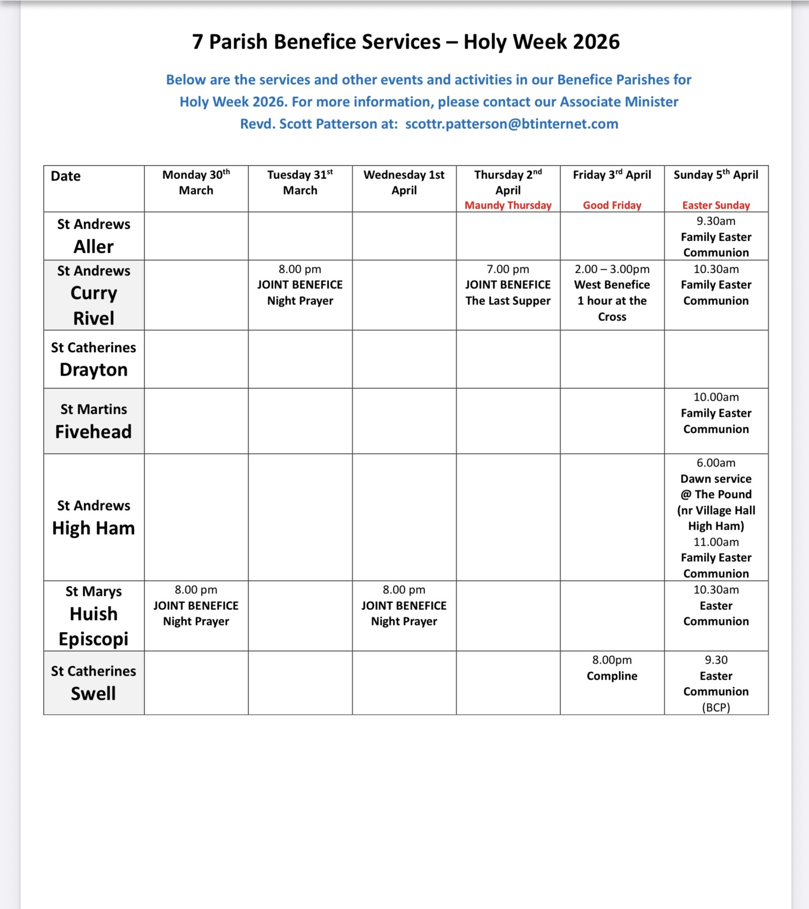 If you would like to advertise an event within the parish or have any relevent news that may be of interest please email the information to [email protected]